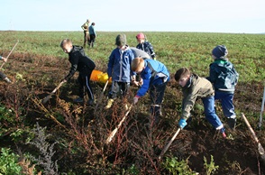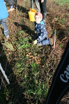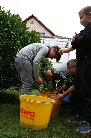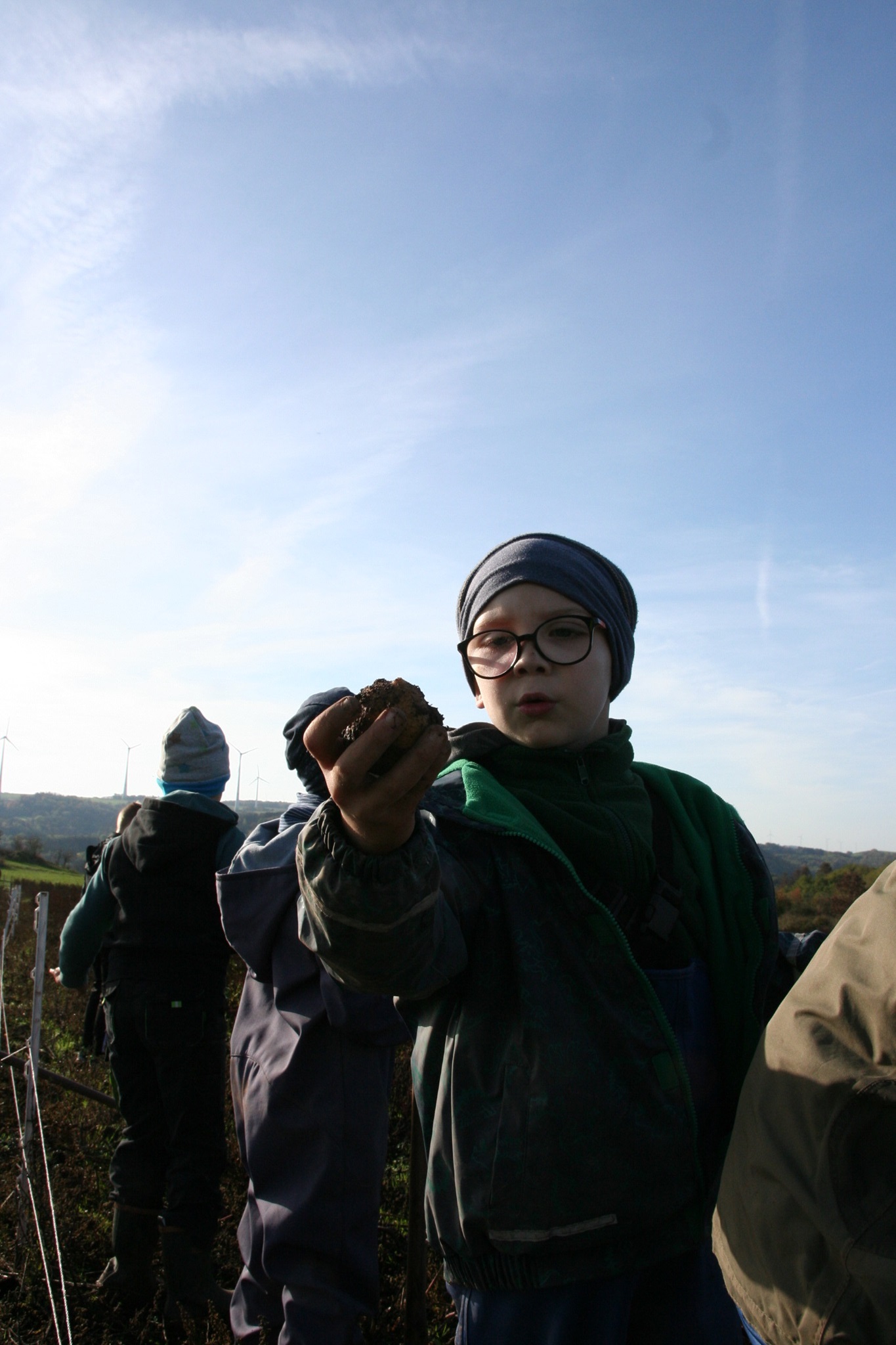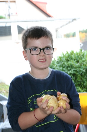 Kartoffelernte mit Muskelkraft und dem Karst waren völlig neue Erfahrungen für die Kinder in der diesjährigen Herbstfreizeit. Obwohl die Ernte wegen der starken Trockenheit im Sommer eher mickrig ausfiel, hatten die Kinder dennoch großen Spaß beim Ausbuddeln der Erdäpfel. Noch vor Ort wurden die ersten Kartoffeln im offenen Feuer gegart und anschließend, trotz anfänglicher Skepsis, mit Genuss gegessen.