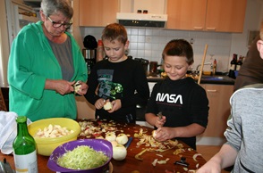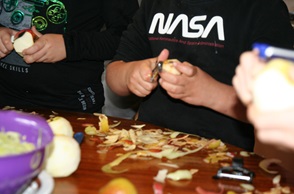 Am folgenden Tag erfuhren die Kinder einiges über die vielfältigen Möglichkeiten, wie Kartoffeln verwertet werden können. Es wurde mit vereinten Kräften und vielen fleißigen kleinen Händen gewaschen, geschält, gerieben und gepellt. Dass man Kartoffelchips selbst herstellen kann, war für einige Kinder eine völlig neue Erfahrung. „Die selbst hergestellten Gerichte, wie Püree, Chips, Bratkartoffeln und Kartoffelpuffer, schmecken einfach am besten“, war die erstaunliche Erkenntnis eines Teilnehmers.