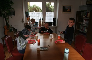 Am letzten Tag der Freizeit wurden die mitgebrachten Kürbisse im Hinblick auf Halloween mit viel Kreativität und Geschick in kleine Monster verwandelt.